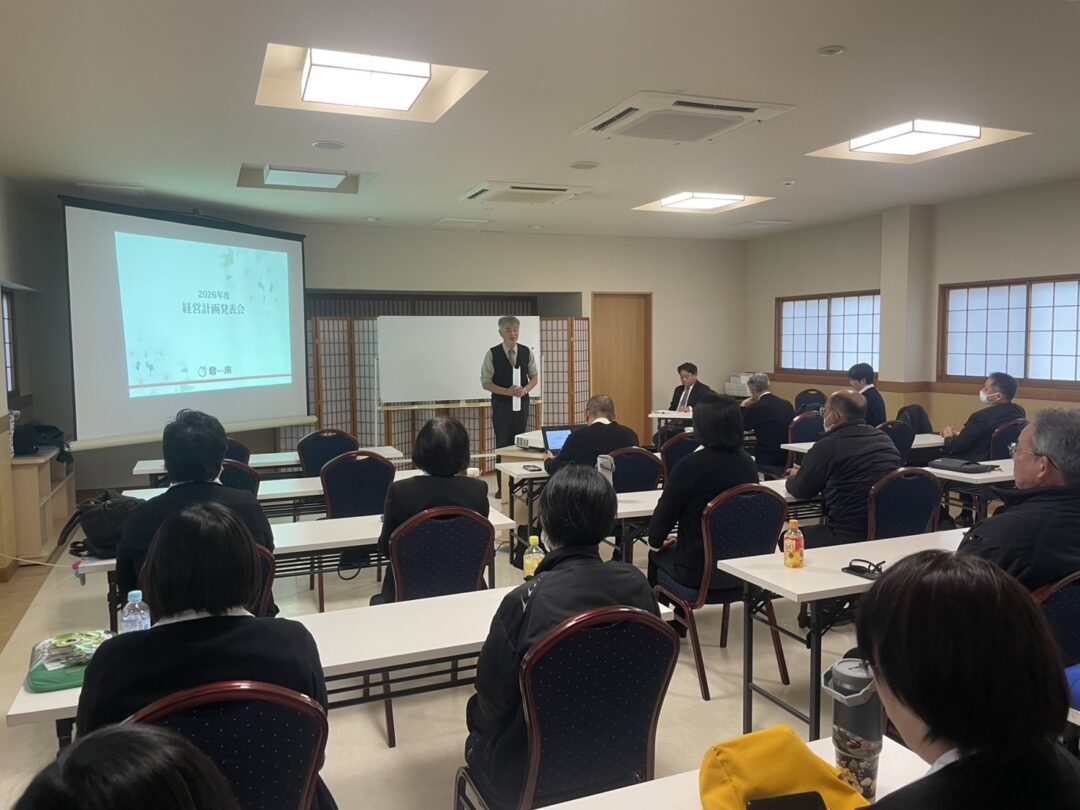 11月13日、経営計画発表会を開催。2025年度を振り返った後、今年度の経営方針、各部署の方針と具体的な取組を発表しました。